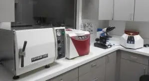In house laboratory equipment for same day blood-work available as well as a relationship with an outsourced lab for a variety of other services and procedures.