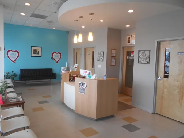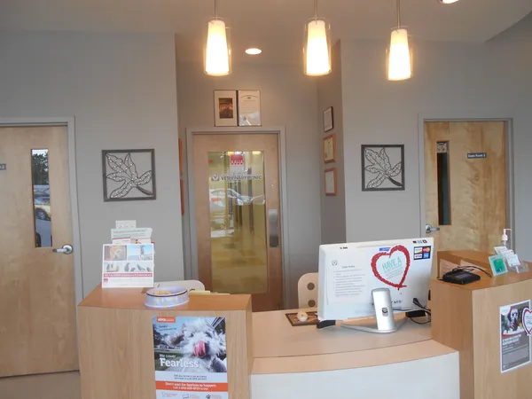 The reception area is nice, clean and spacious for you and your pets comfort.